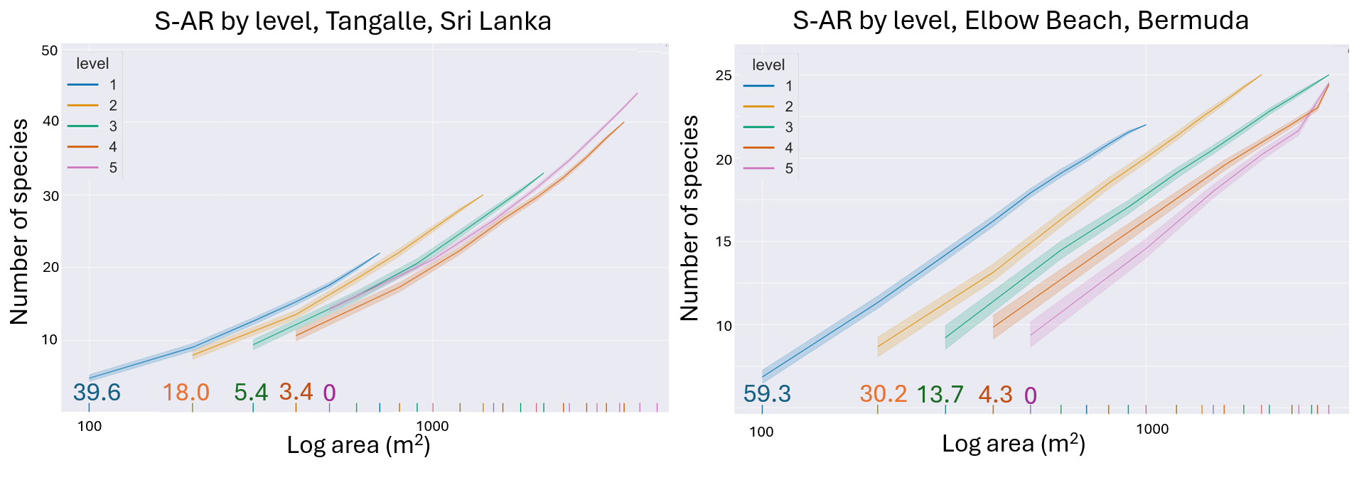To answer this question, we modified the data collection design by Palmer and White (1994) to be more suitable for coral reef fish, creating nested transects instead of nested quadrats. Data were collected in 3 localities in Sri Lanka and 7 localities in Bermuda. A new tool for analysis of the influence of grain and extent on perceived biodiversity, the SEAL, was created, and data were analysed using this software, following the methods of Palmer and White (1994).